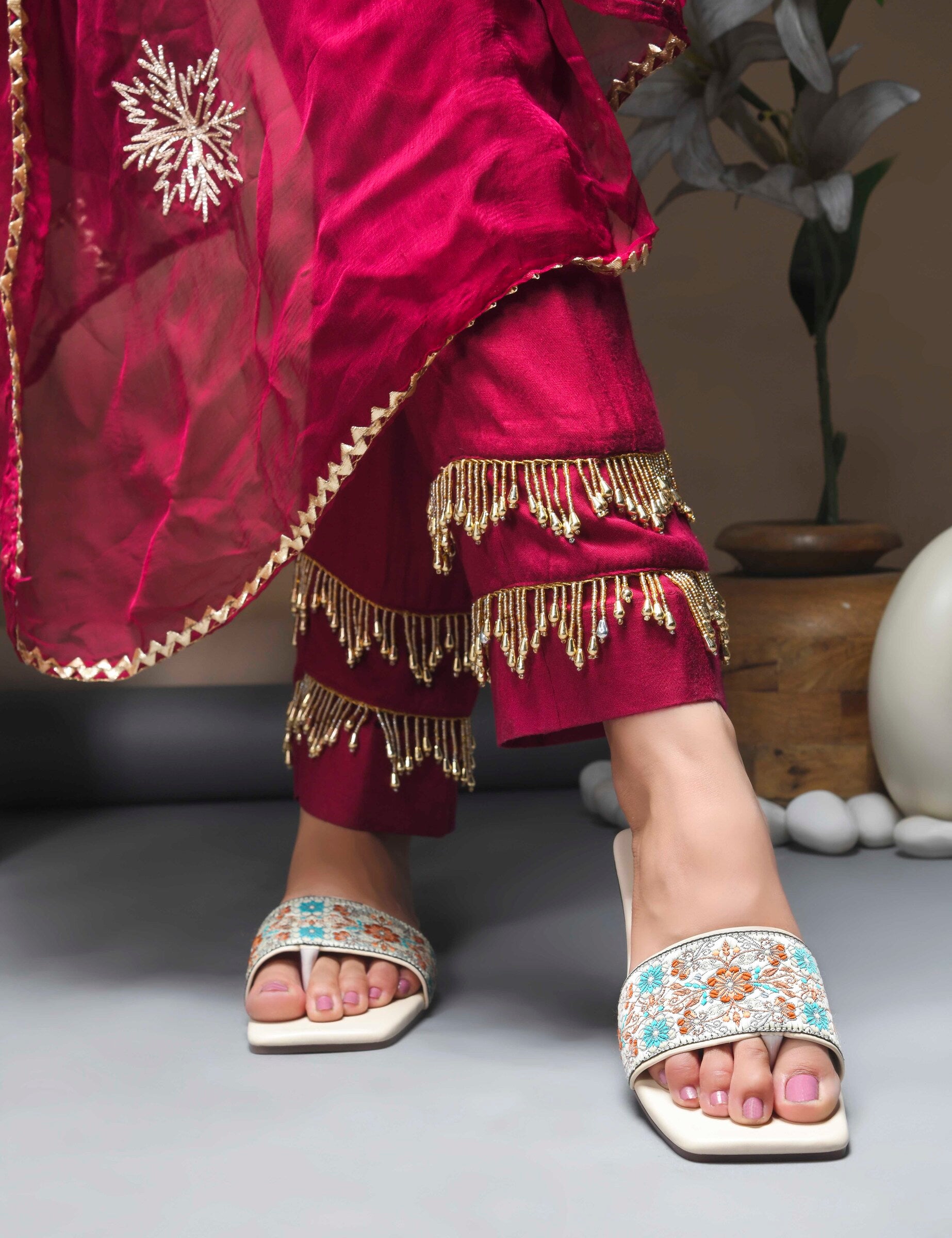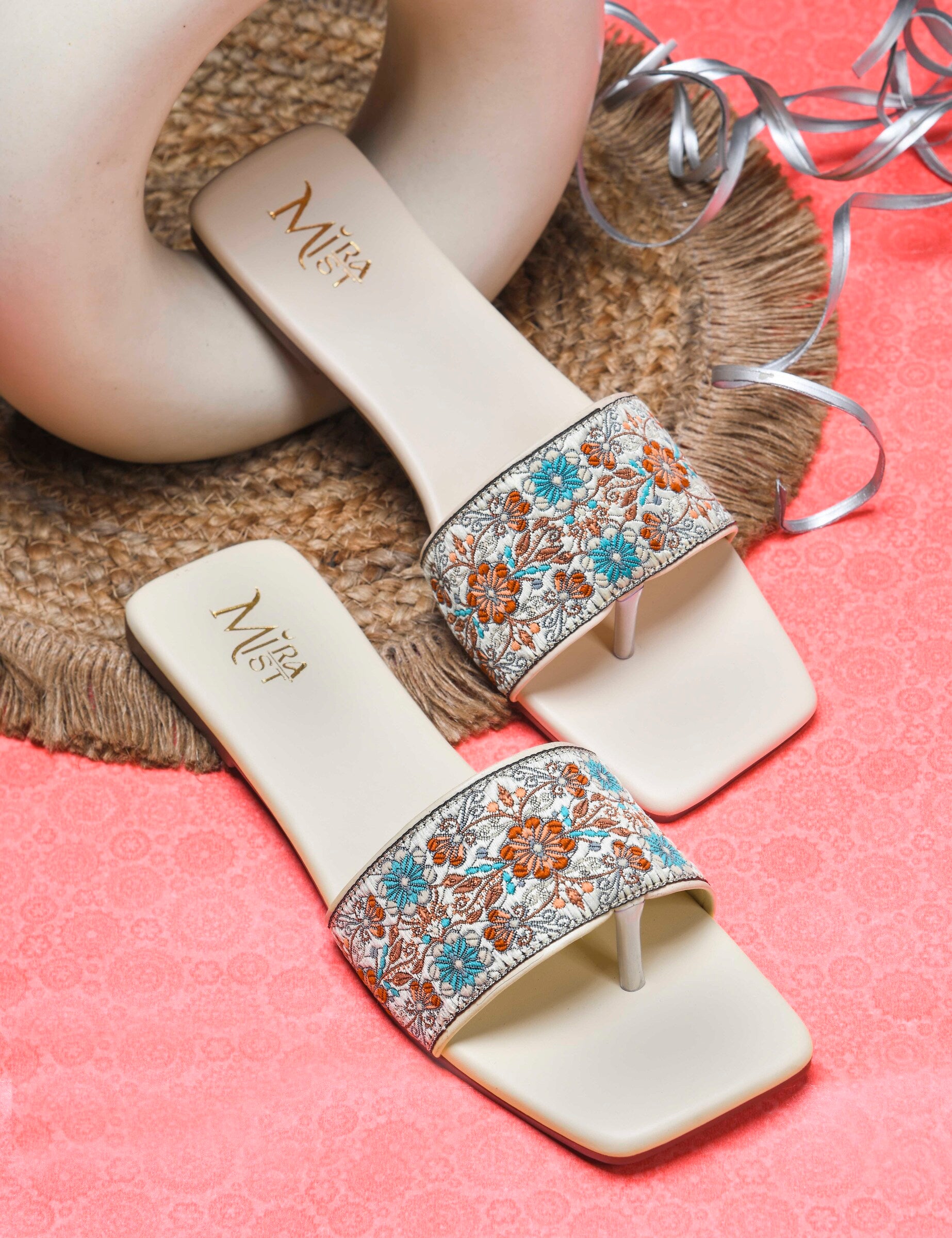 MiraMist Embroidered Ethnic Slide Sandals for Women & Girl - Perfect Flat Slip-On for Festive, Casual & Everyday Wear