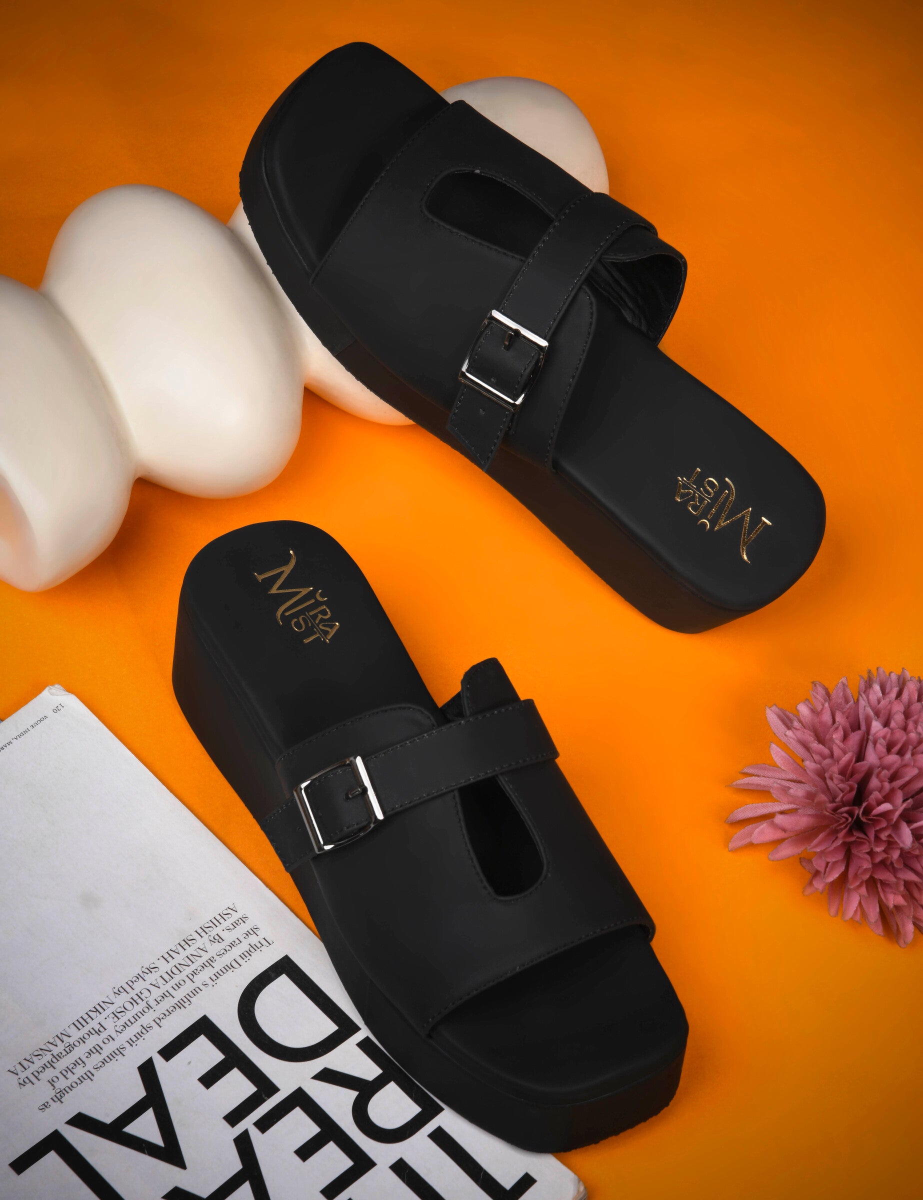 MiraMist Women’s Stylish Wedge Heels | Slip-On Sandals with Buckle Design | Comfortable & Durable Party, Office & Casual Wear